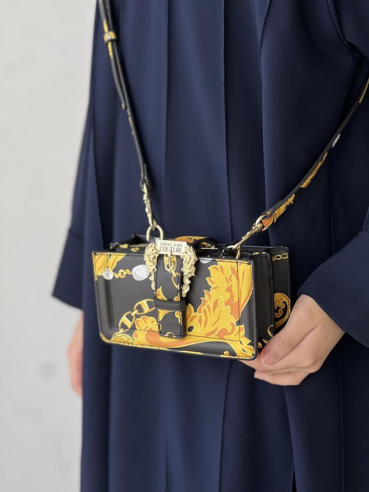 تتميز حقيبة الكتف من Versace Jeans Couture بإبزيم باروكي ذهبي اللون إنه محفور بشعار العلامة التجارية مما يضفي على القطعة إحساسًا فخمًا ومصقولًا.