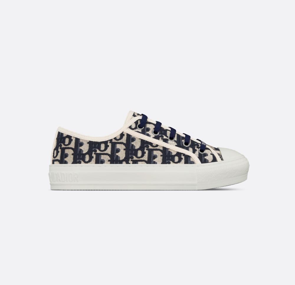 تم تزيين حذاء Walk'n'Dior الرياضي هذا بزخرفة Dior Oblique الرمزية المطرزة بالقطن باللون الأزرق الداكن. تضفي التوقيعات الموجودة على اللسان والنعل المطاطي والأربطة أسلوبًا خالدًا على التصميم الكاجوال لهذا الحذاء.