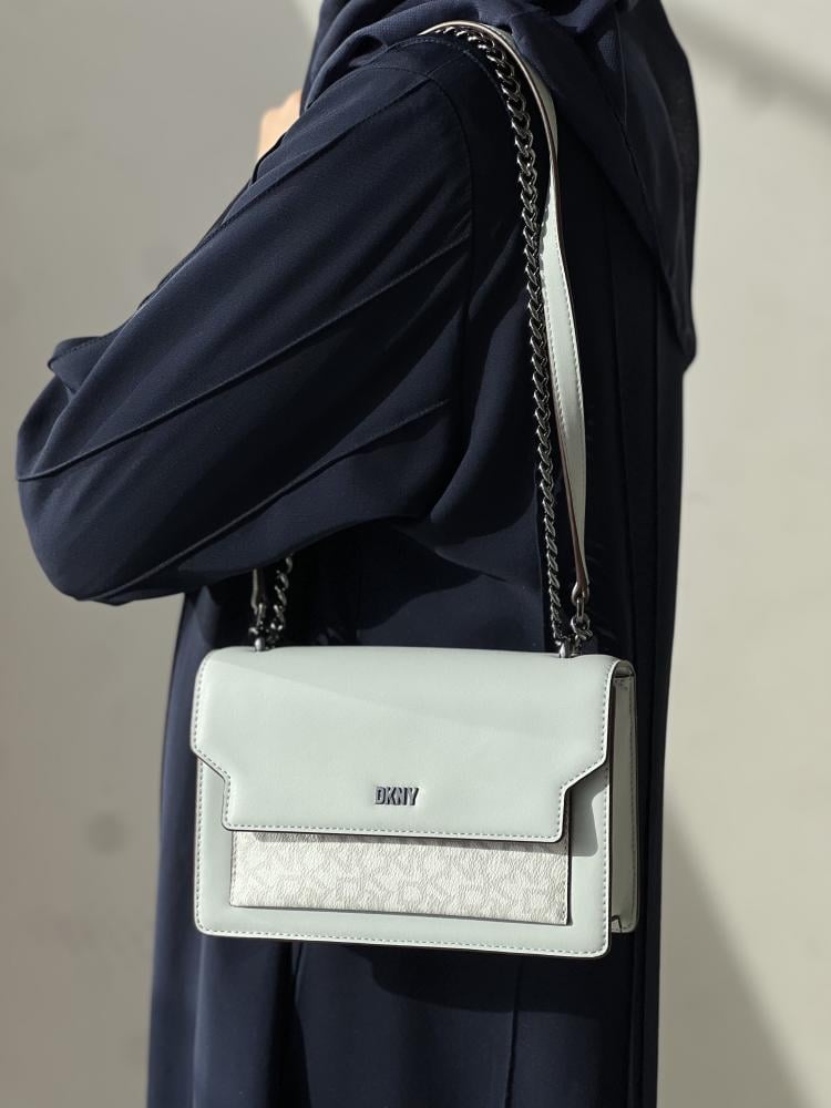 تعرف على حقيبة كتف ميلي من DKNY: طراز أنيق وراقي تم تصميمه مع الأخذ في الاعتبار كل يوم. تتميز هذه الصورة الظلية الأصغر حجمًا بحزام على شكل سلسلة لإضفاء القليل من التألق، بالإضافة إلى جيوب داخلية للحفاظ على تنظيم أغراضك.