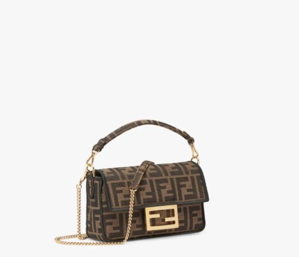 حقيبة باغيت صغيرة مميزة مصنوعة من جلد نابا الأبيض الناعم مع شعار FF البارز بتأثير ثلاثي الأبعاد ومزينة بمشبك FF.