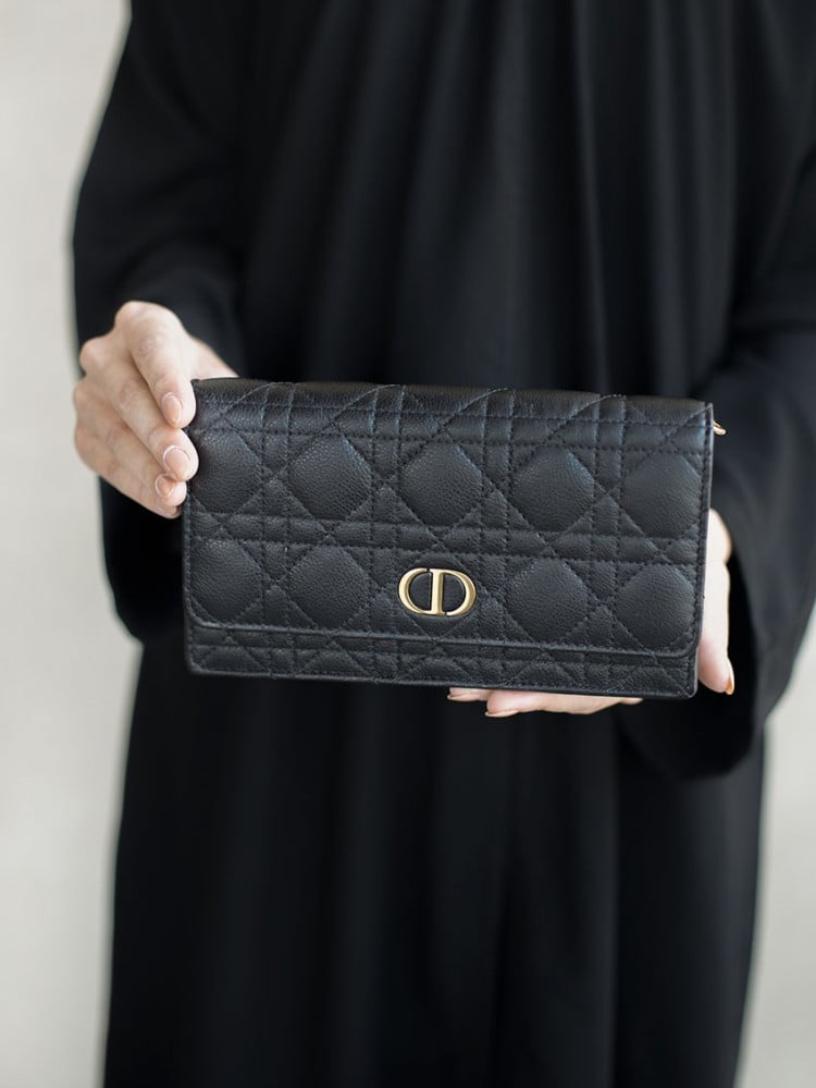 حقيبة Dior Caro الجديدة لهذا الموسم هي ابتكار عملي وأنيق. صُنع من جلد العجل المرن الطبيعي أسود اللون مع درزات كاناج ، ويتميز بغطاء معدني ذهبي قديم مزين بتوقيع كريستيان ديور يكشف عن حجرة لاستيعاب جميع الضروريات الخاصة بك. تتيح سلسلة الارتباط القابلة للإزالة التي تحمل توقيع كريستيان ديور إمكانية ارتدائها يدويًا أو على الكتف أو عبر الجسم لجعلها الحقيبة اليومية المثالية.