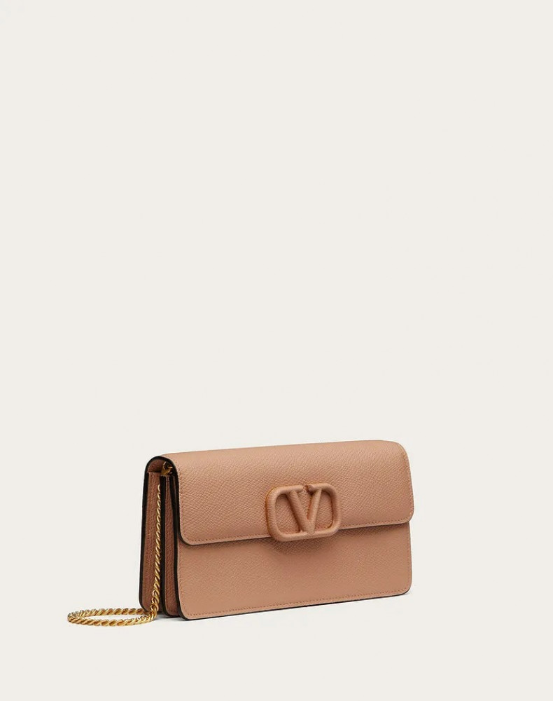 فالنتينو | PORTEFEUILLE À CHAÎNE VLOGO SIGNATURE EN VEAU GRAINÉ