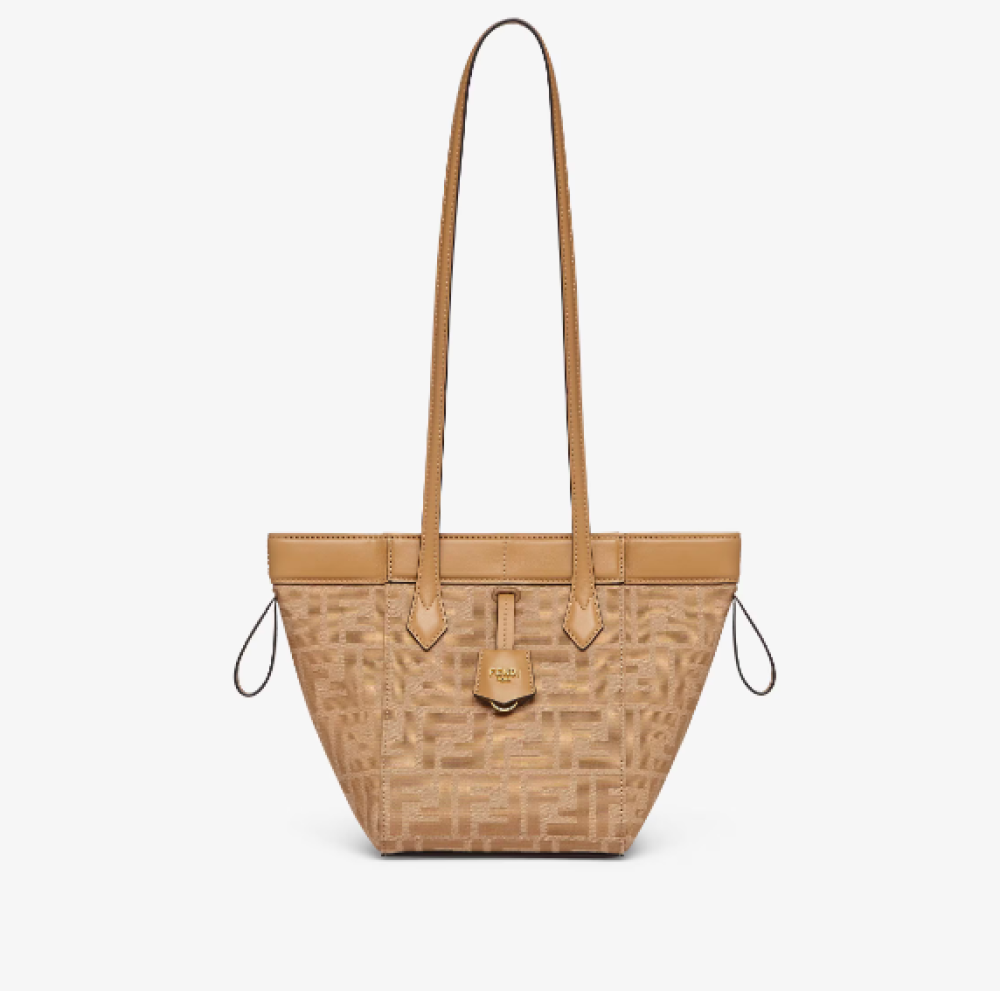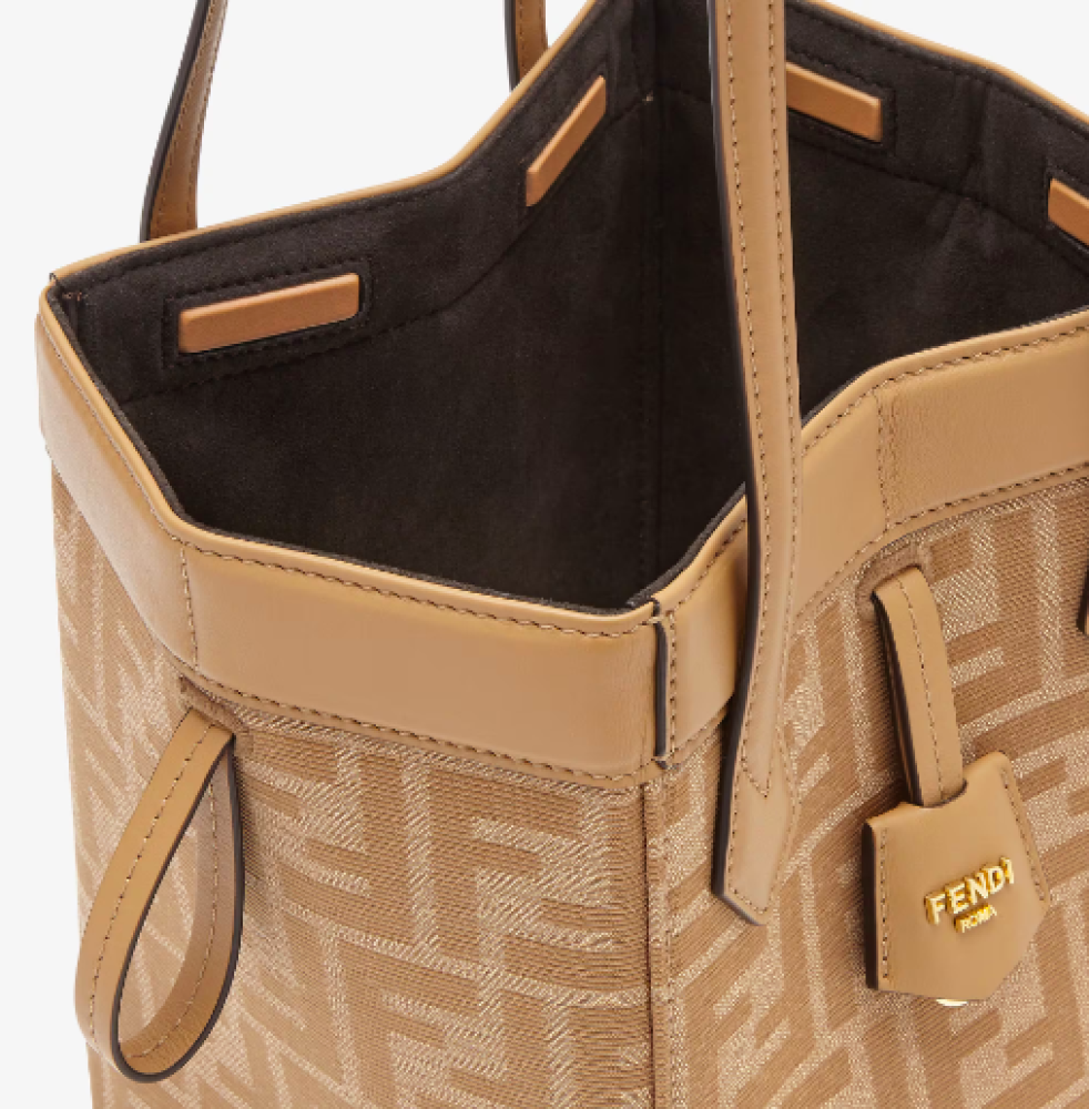 تأتي مع علبة مفاتيح معدنية تحمل كلمة Fendi. حجرة داخلية مبطنة وأدوات معدنية مطلية بالذهب.