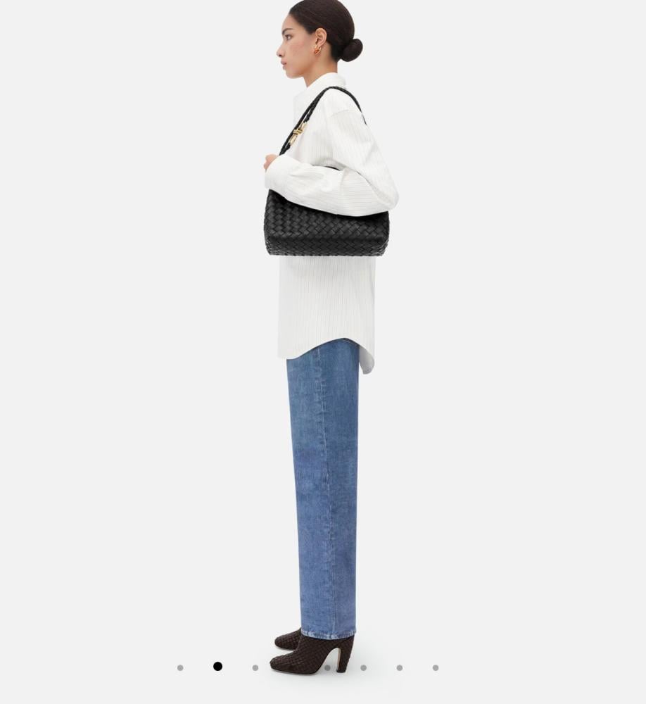 حقيبة بمقبض علوي بتصميم ممدود من جلد إنترشياتو المرن، مزينة بعقدة مميزة، وحزام كتف منزلق.