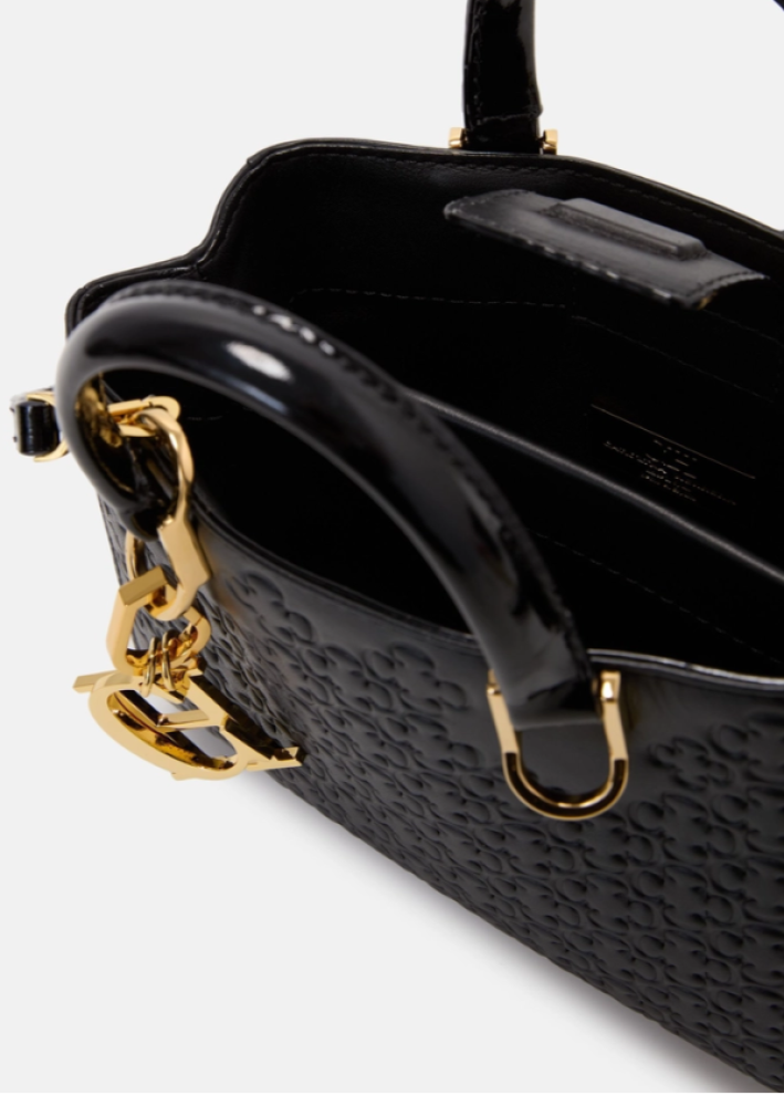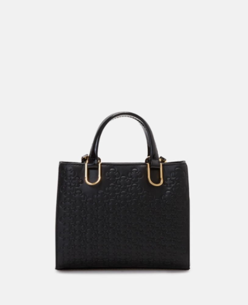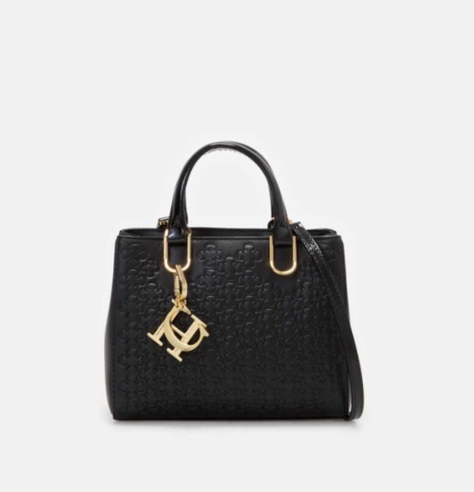 حقيبة ميني مصنوعة يدويًا من جلد الباوباب، بحبيبات دقيقة وطبيعية، وتتميز بختم روزيتا إنسيجنيا المنقوش مع الأحرف الأولى من اسم كارولينا على شكل زهرة، ودلاية مطلية بالذهب تحمل الأحرف الأولى من اسمها. مزودة بحزام ومقابض قابلة للفصل، ويمكن حملها كحقيبة كروس أو على الكتف أو باليد.