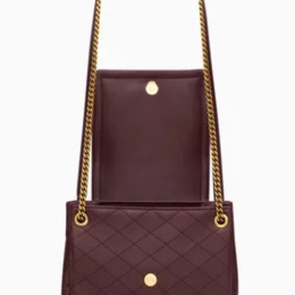 تتميز هذه الحقيبة الناعمة بحزام منزلق من سلسلة وجلد لارتدائها على الكتف أو على الجسم.
