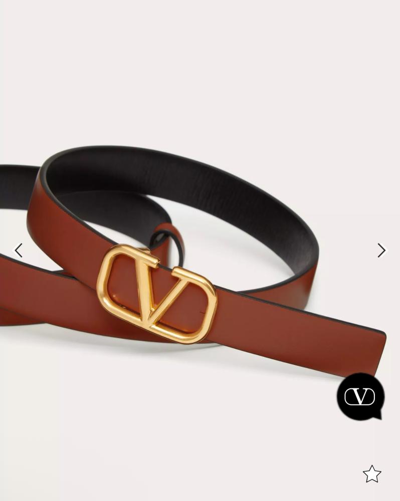 حزام فالنتينو غارافاني V-Logo Signature ذو وجهين، مصنوع من جلد العجل اللامع.