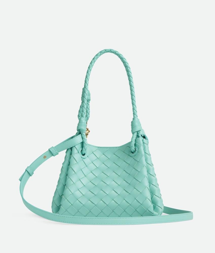 حقيبة كتف صغيرة من الجلد المجدول مع حزام كتف قابل للإزالة